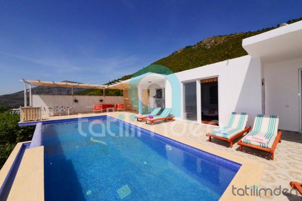 Muhafazakar Aile Villası olarak daha çok tercih edilen bu villamız 3 adet yatak odasıyla 6 kişiye hizmet verebilen Kalkan Üzümlü'deki korunaklı özel yüzme havuzu ve bahçesi olan güzel villalarımızdan biridir.
