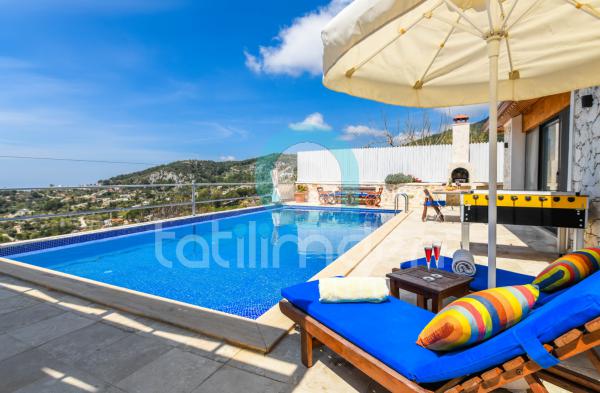 Kalkan'da korunaklı islamimuhafazakar balayıvillamızda, ihtiyacınız olabilecek bütün mutfak eşyaları (buzdolabı, bulaşık makinası, fırın vb gibi) ve salon mobilyaları (LCD TV, klima, uydu alıcı, koltuk takımı vb. gibi) özenle seçilerek dizayn edilmiştir. Villamızın salonu deniz manzaralıdır ve direk havuz terasına direk çıkış yapabilirsiniz. Ücret farkı ödenerek ısıtmalı kapalı havuz aktive edilebilmektedir.
