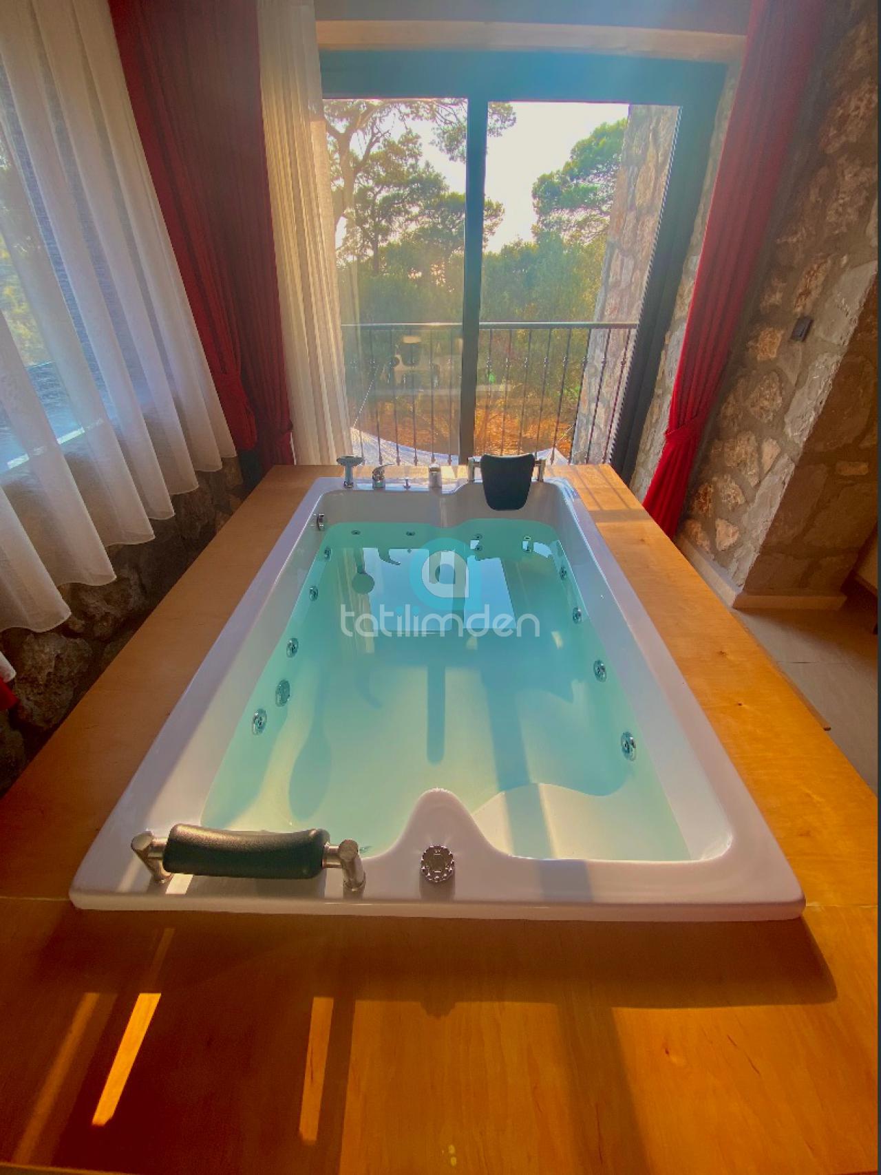 Ölüdeniz Kıdrak'ta bulunan villamız 4 kişilik kapasiteye sahiptir.Taş Ev tasarım konsepti ve içerisinde sağladığı konfor alanın ile dikkat çeken villamız tamamı ile misafirlerimizin konforu ve keyfine göre dizayn edilmiştir