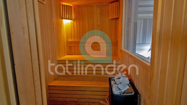 Ayrıca villamızın girişi zemin katta olup, kat içerisinde açık mutfak salon yer almaktadır. Bir alt kata indiğinizde ise hamam, sauna ve ısıtmalı kapalı havuz mevcuttur. Kapalı havuzun bulunduğu katta ortak kullanım banyo/wc bulunmaktadır.