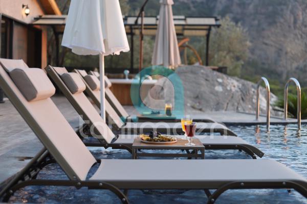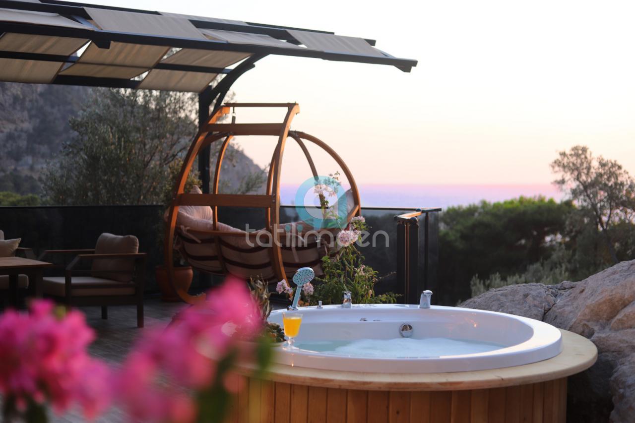 Sonsuzluk havuzunda fethiye manzarasının ufuk çizgisiyle birleştiği noktada yeşil ve mavinin tadını beraber çıkartabilir, huzuru bahçede ki jakuzide yakalayabilir ya da günbatımını bahçedeki salıncakta karşılayabilirsiniz