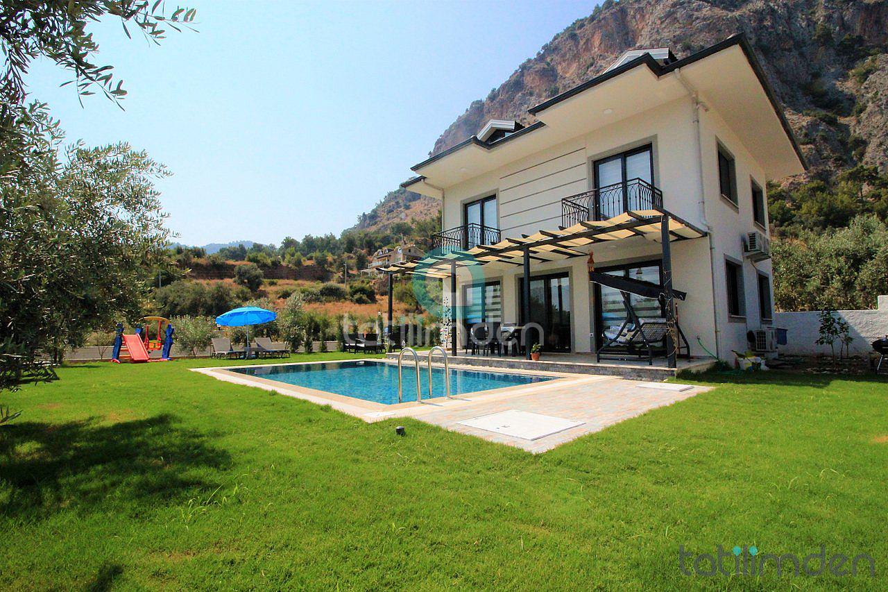 Bu Kiralık Villa Fethiye merkeze 29km, Ölüdeniz'e 45km uzaklıktadır. Doğayla iç içe yürüyüş yapabileceğiniz ve eğlence ve alışveriş merkezine yakın Göcek bölgesini çok beğeneceksiniz.