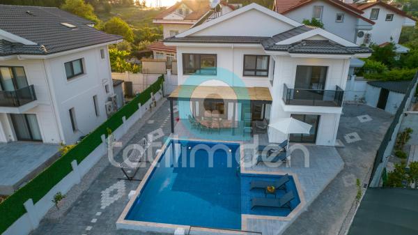 Fethiye''nin sakin köylerinden olan, Çiftlik Köyü'nde bulunan kiralık müstakil villamızda dışarıdan görünmeyen korunaklı özel yüzme havuzu, şezlonglar, güneş şemsiyeleri, yemek masası, sandalyeler, barbekü ve oturma alanı bulunmaktadır.