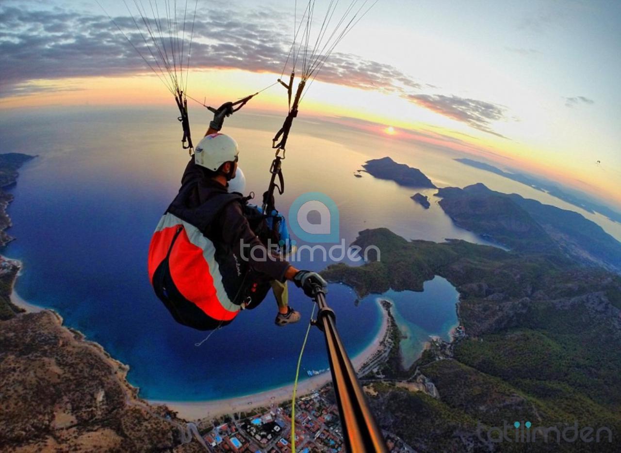 Fethiye ve Ölüdeniz’in sembolü haline gelen yamaç paraşütü babadağın zirvesinde bulunan 1700 ve 1950 m. Yükseklikteki parkurlardan her gün 5 farklı saatte uçuş yapılmaktadır. Fethiye' yi ziyaret eden adrenalin tutkunlarına tavsiyemizdir.. turun tamamı 3 saat sürmektedir. Uçuş süresi hava koşullarına bağlı olarak 30-45 dk. Arasındadır.