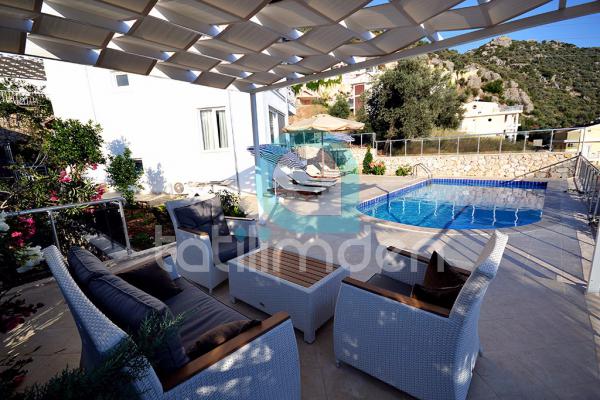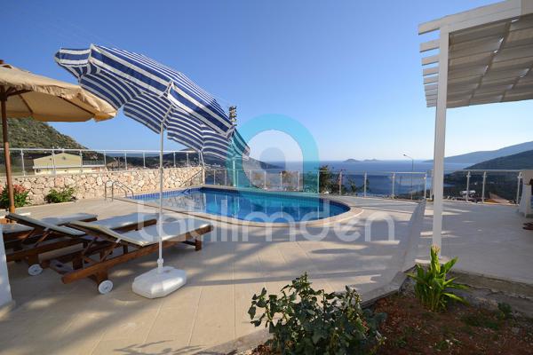 Kalkan Bölgesi Deniz ManzaralıKiralık Villamızda özel yüzme havuzu, şezlonglar, güneş şemsiyeleri, 14 kişilik yemek masası & sandalyeler, mangal ve oturma alanı bulunmaktadır. Havuzumuz deniz manzaralı olup, geniş bir alana sahiptir.