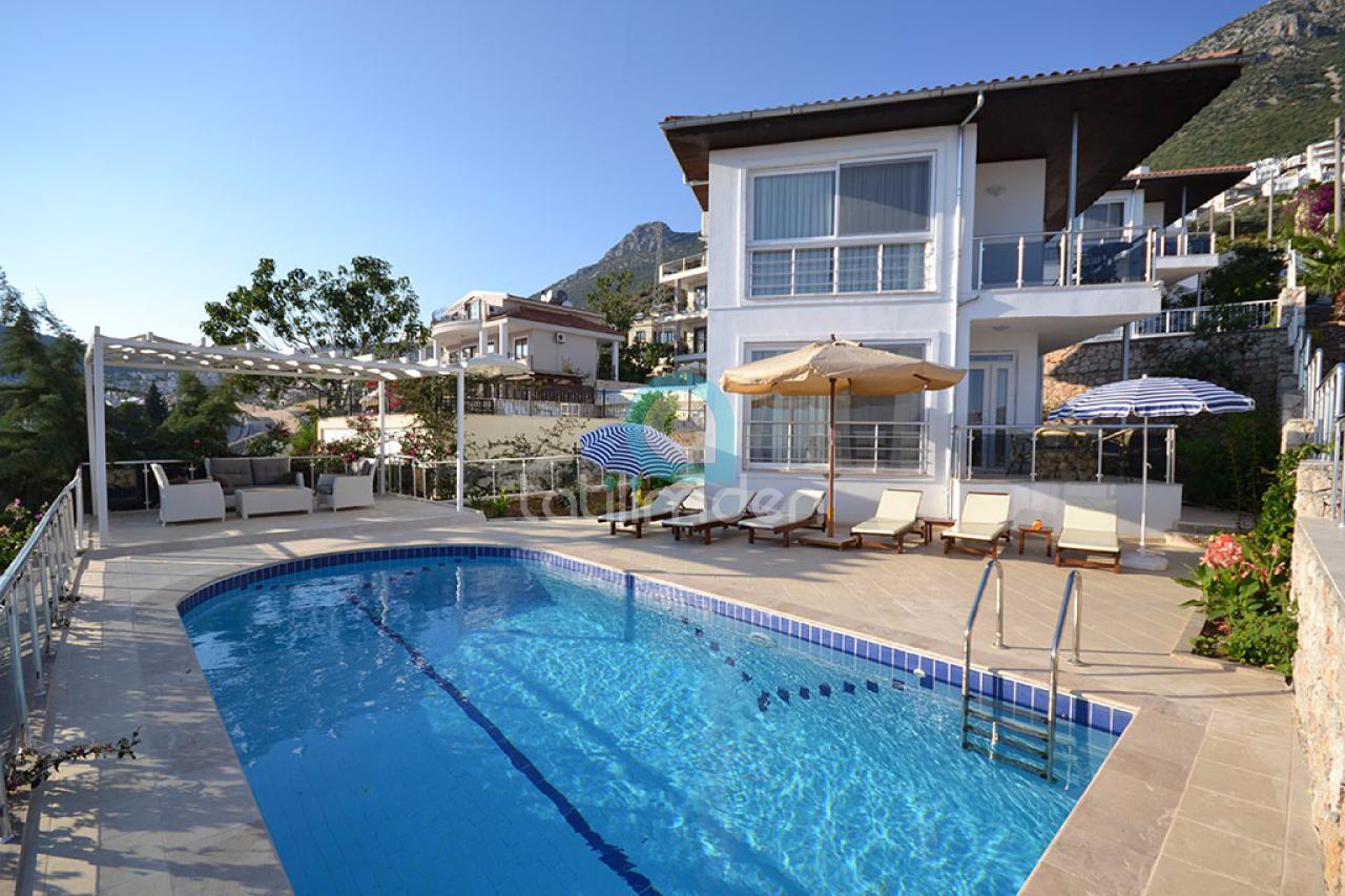 Kalkan deniz manzaralı geniş aile villası olarak ve çekirdek aileler tarafından daha çok tercih edilen bu villamız 4 adet yatak odasıyla 8 kişiye hizmet verebilen Kalkan Kızıltaş' taki özel havuzu ve bahçesi olan çok güzel villalarımızdan biridir.