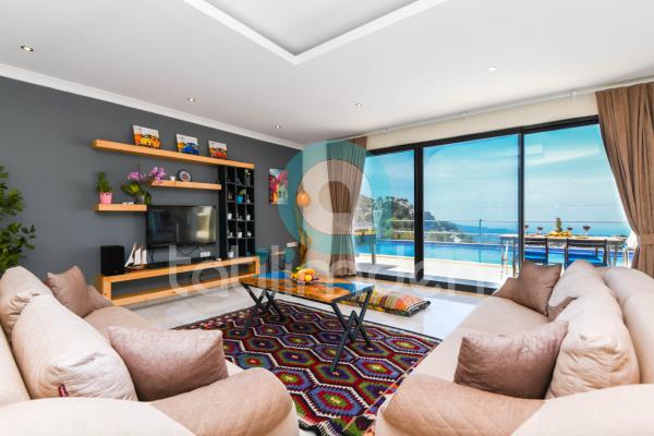 Kalkan'da korunaklı islamimuhafazakar balayıvillamızda, ihtiyacınız olabilecek bütün mutfak eşyaları (buzdolabı, bulaşık makinası, fırın vb gibi) ve salon mobilyaları (LCD TV, klima, uydu alıcı, koltuk takımı vb. gibi) özenle seçilerek dizayn edilmiştir. Villamızın salonu deniz manzaralıdır ve direk havuz terasına direk çıkış yapabilirsiniz. Ücret farkı ödenerek ısıtmalı kapalı havuz aktive edilebilmektedir.