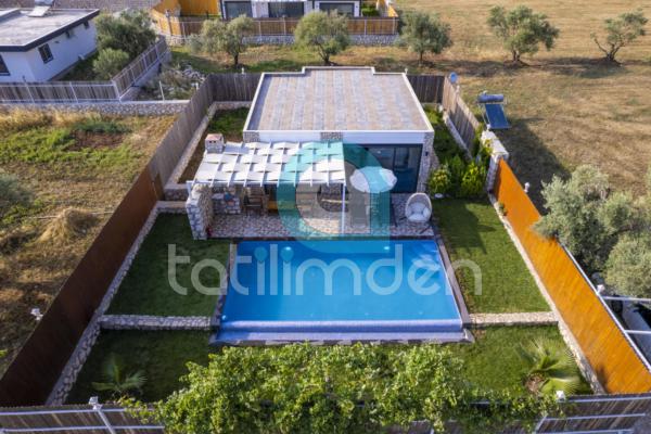 Özel yüzme havuzu, şezlonglar, güneş şemsiyeleri, yemek masası, sandalyeler ve oturma alanı bulunmaktadır.
