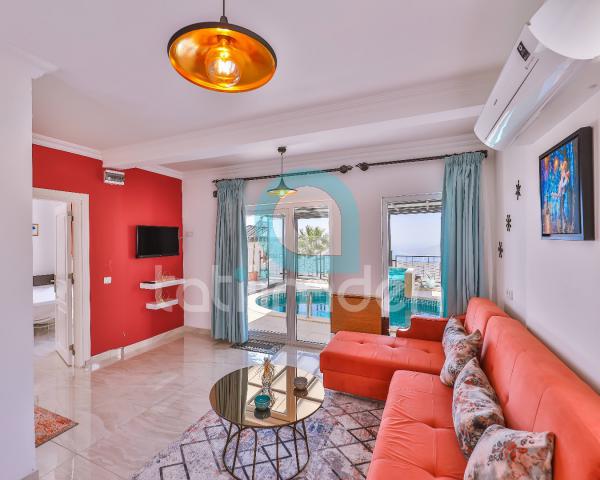 Kalkan Kördere bölgesinde bulunan bu kiralık villa, yatak odasında jakuzisi ile romantik anlar yaşamanızı sağlayarak dikkat çekmektedir. Balayı çiftleri için herşey en ince ayrıntısına kadar düşünülmüştür.