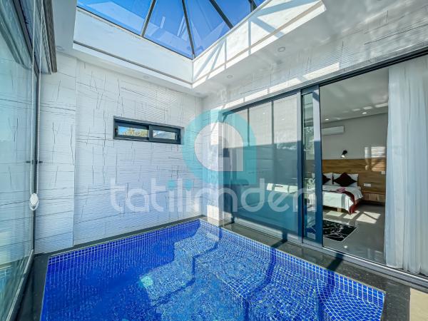 Balayı villası ve çekirdek aile villası olarak daha çok tercih edilen bu villamız 2 adet yatak odasıyla 5 kişiye hizmet veren villa seçeneğidir.